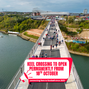 The landmark new footbridge, which connects the city centre with Sheepfolds and the Stadium of Light, will officially open at 1:30pm on Saturday, 18th October, in time to welcome thousands of Black Cats fans heading to the Stadium of Light to watch Sunderland AFC take on Wolves.