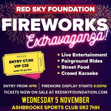 Join Red Sky Foundation for a spectacular display at Ashbrooke Sports Club on Wednesday 5th November